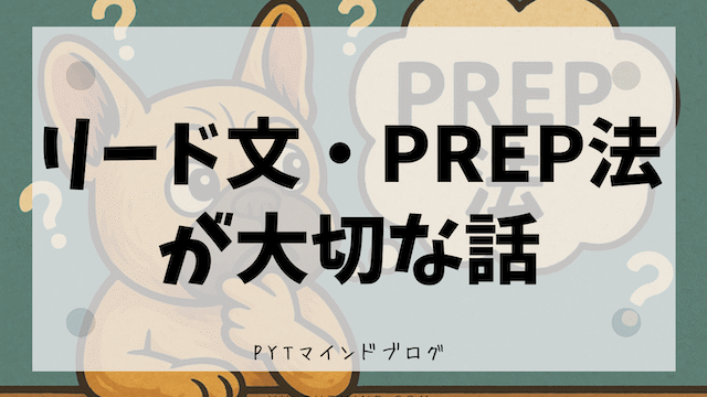 ブログのこと リード文が9割!?PREP法で“伝えるブログ”を目指す初心者主婦の実践記録 2025年6月13日 yu-pytmind https://yu-pytmind.com/wp-content/uploads/2025/03/27a110d4017d5b5fd58224ea3d0aff3b.png “ブログで稼ぐ”は可能?!